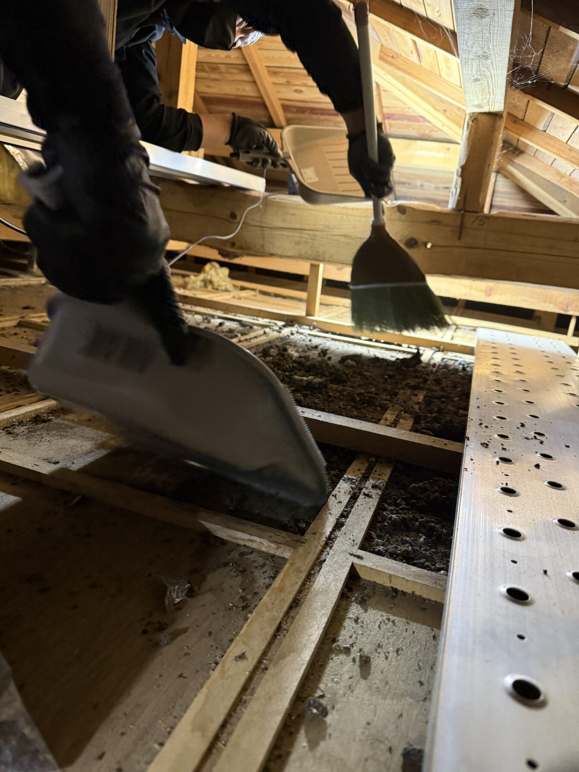 大量に堆積していたフンや破損した断熱材、巣材などを一つひとつ丁寧に除去。