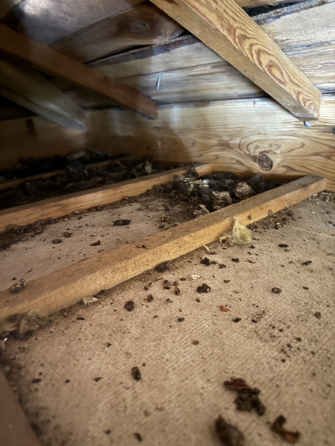 内部には無数のフンが堆積し、断熱材の破損や天井材の崩壊、異臭、さらには屋内の押し入れや寝具にまで汚れが広がっており、深刻な被害となっていました。